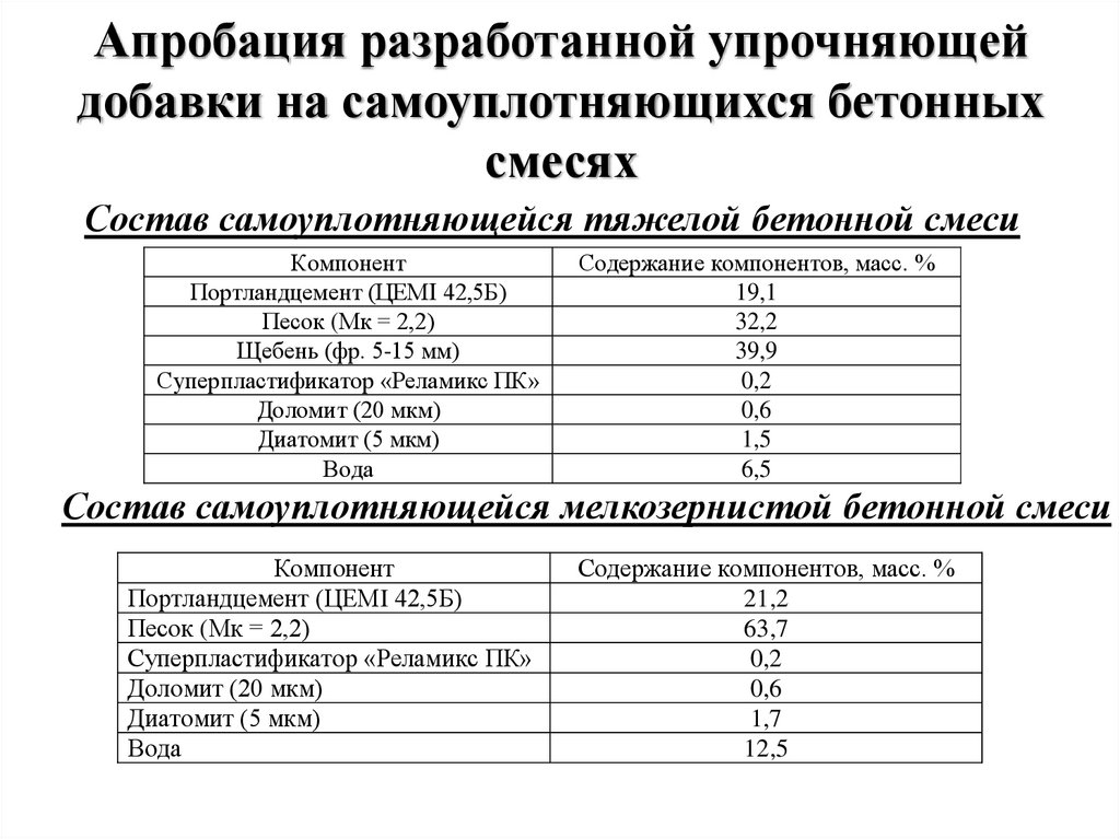 Апробация разработанной упрочняющейдобавки на самоуплотняющихся бетонных