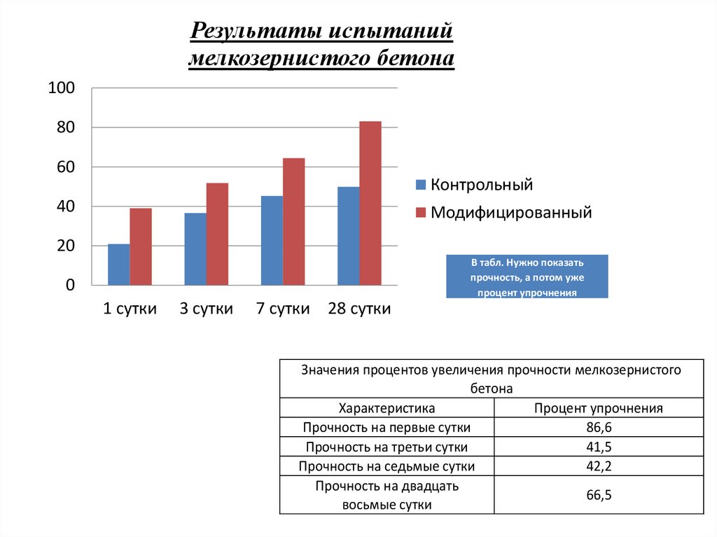 Результаты испытаниймелкозернистого бетона