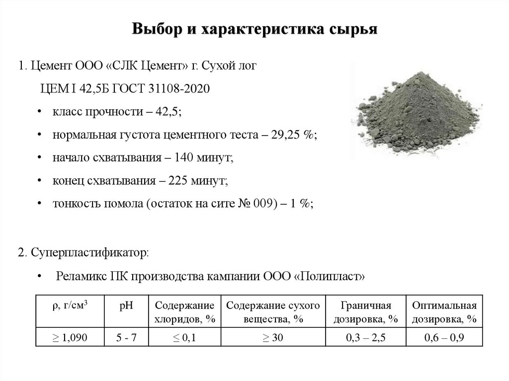 Выбор и характеристика сырья1. Цемент ООО «СЛК Цемент» г. Сухой лог