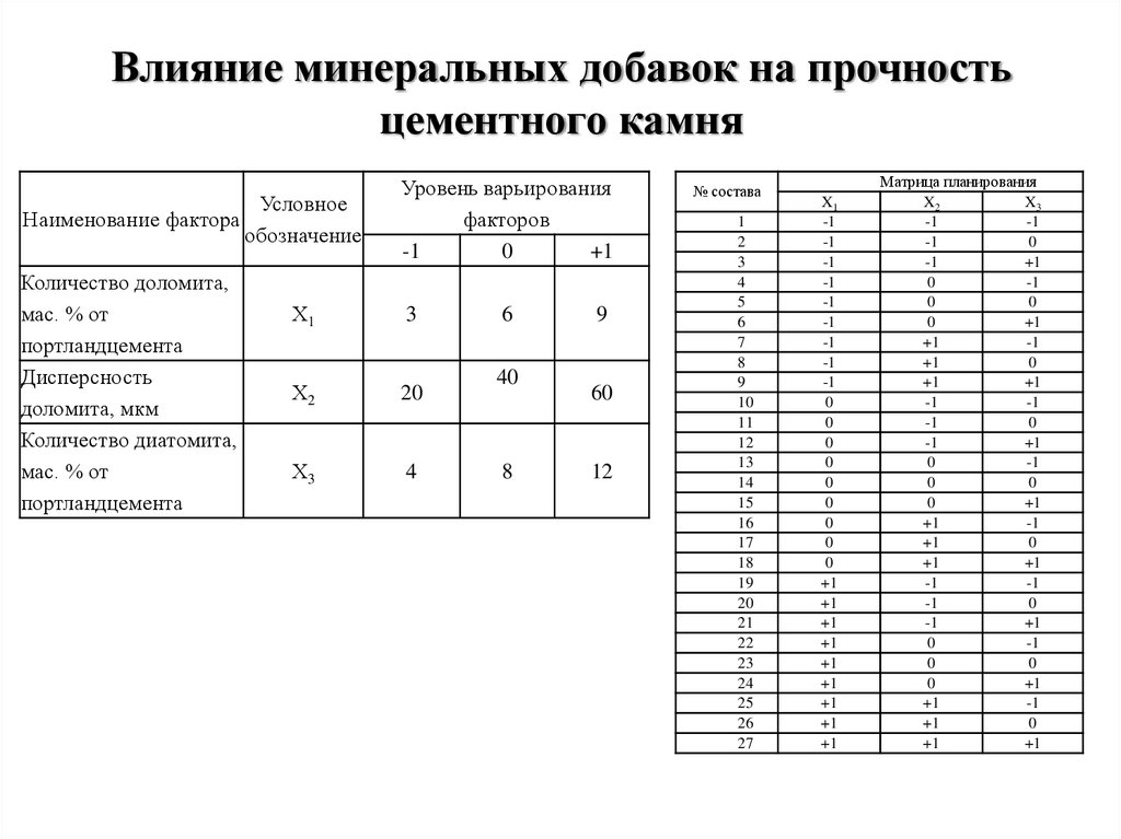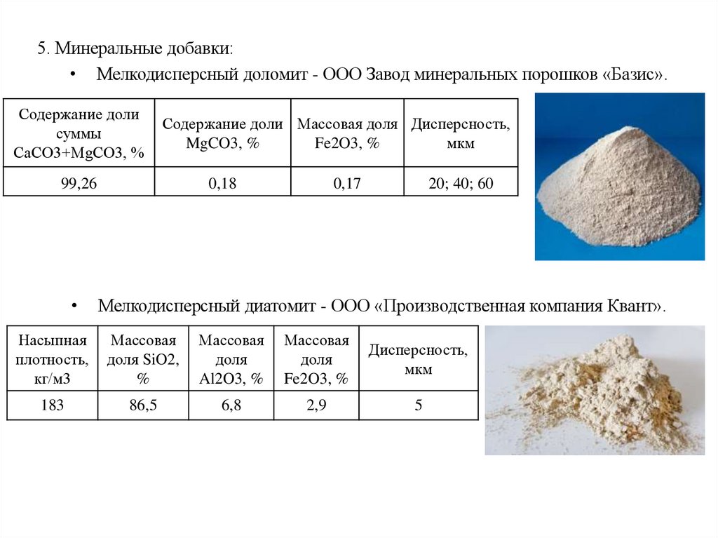 (тестообразующей составляющей выступающей центрами кристаллизации и пуццолановой добавки снижающей
