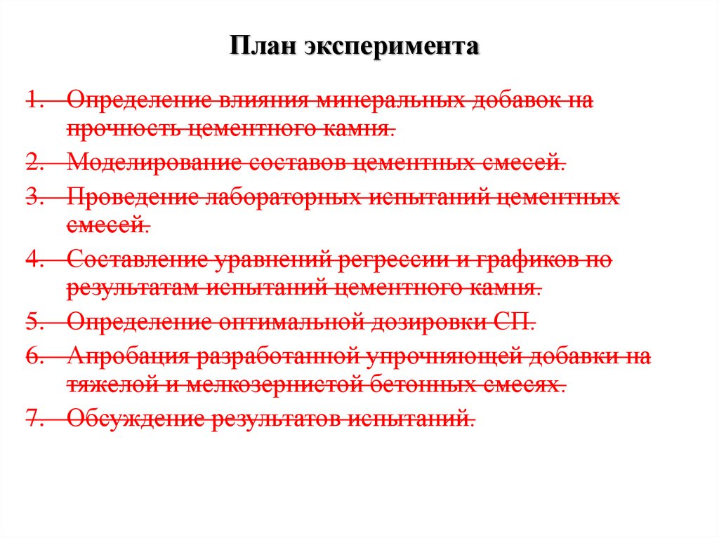 морозостойкость) разработанных бетонов; разработка