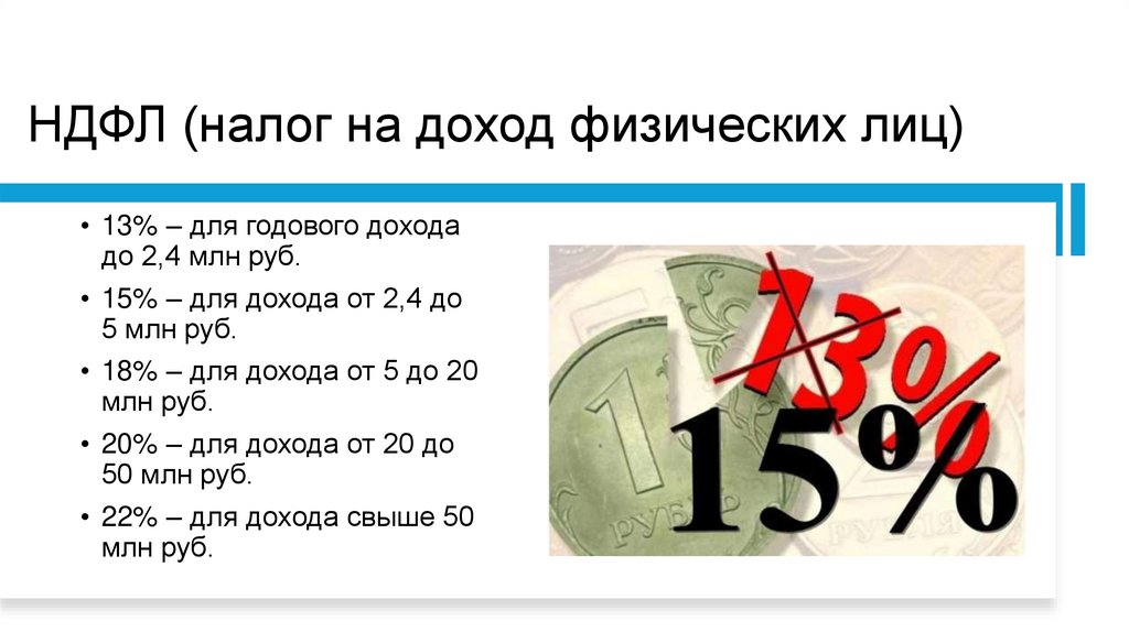 НДФЛ (налог на доход физических лиц)• 13% – для годового дохода