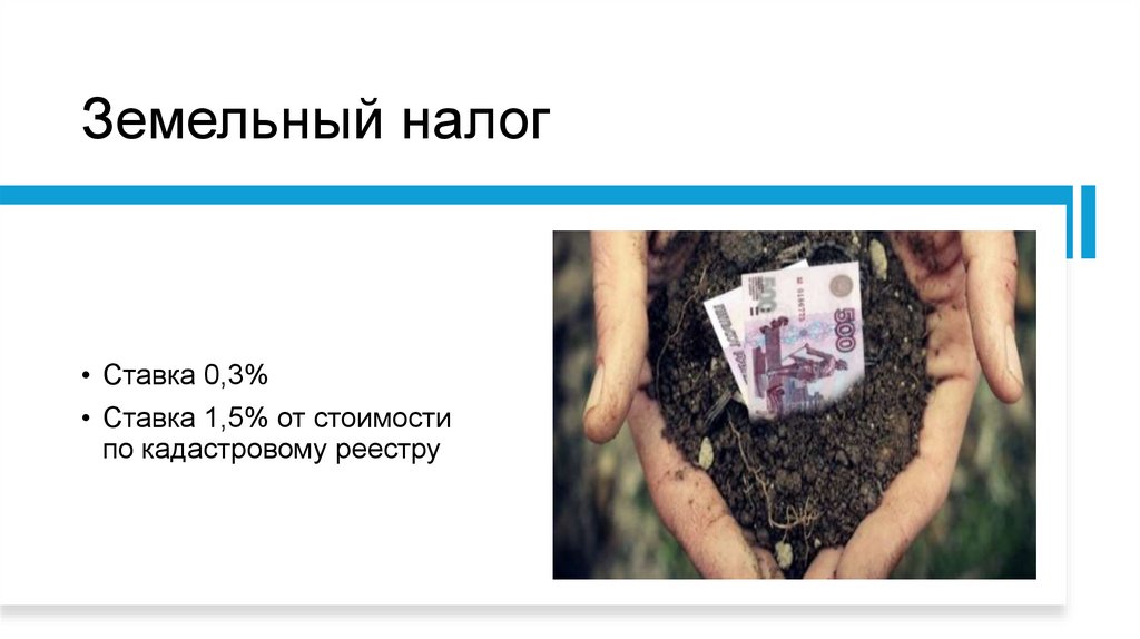 Налог на имущество физических лиц• Базовая ставка 0,1%.(жилье,
