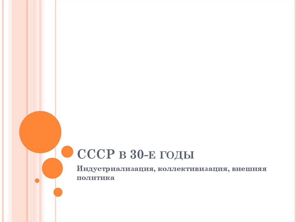 СССР в 30 -е годы. Индустриализация, коллективизация, внешняя политика