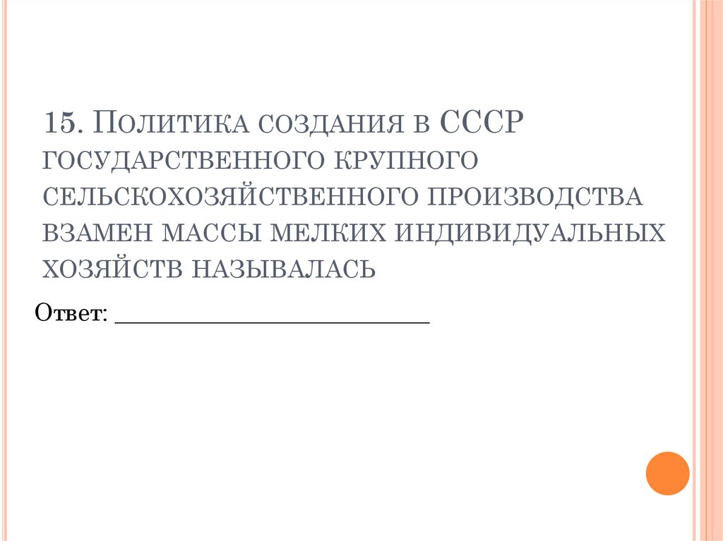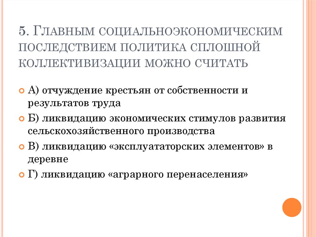 5. ГЛАВНЫМ СОЦИАЛЬНОЭКОНОМИЧЕСКИМПОСЛЕДСТВИЕМ ПОЛИТИКА СПЛОШНОЙ