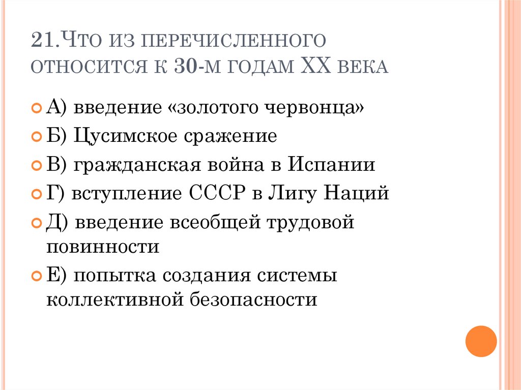 21.ЧТО ИЗ ПЕРЕЧИСЛЕННОГООТНОСИТСЯ К 30-М ГОДАМ XX ВЕКА