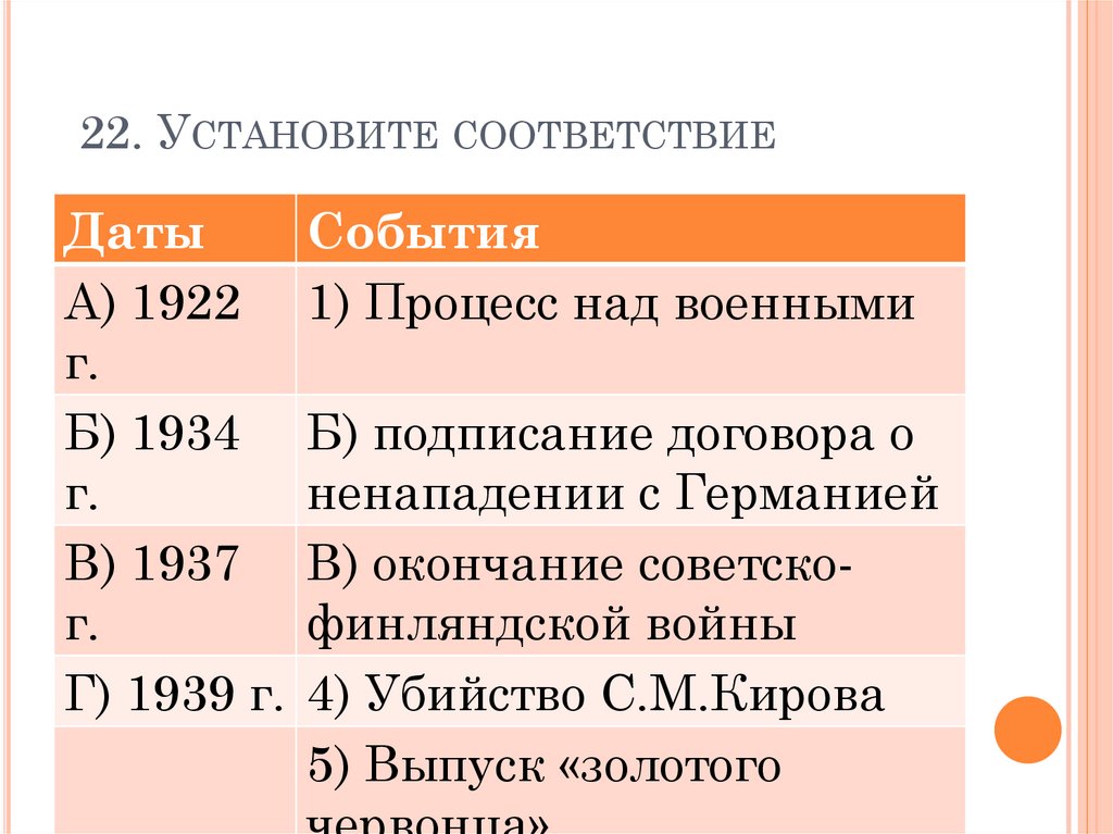 22. УСТАНОВИТЕ СООТВЕТСТВИЕДаты
