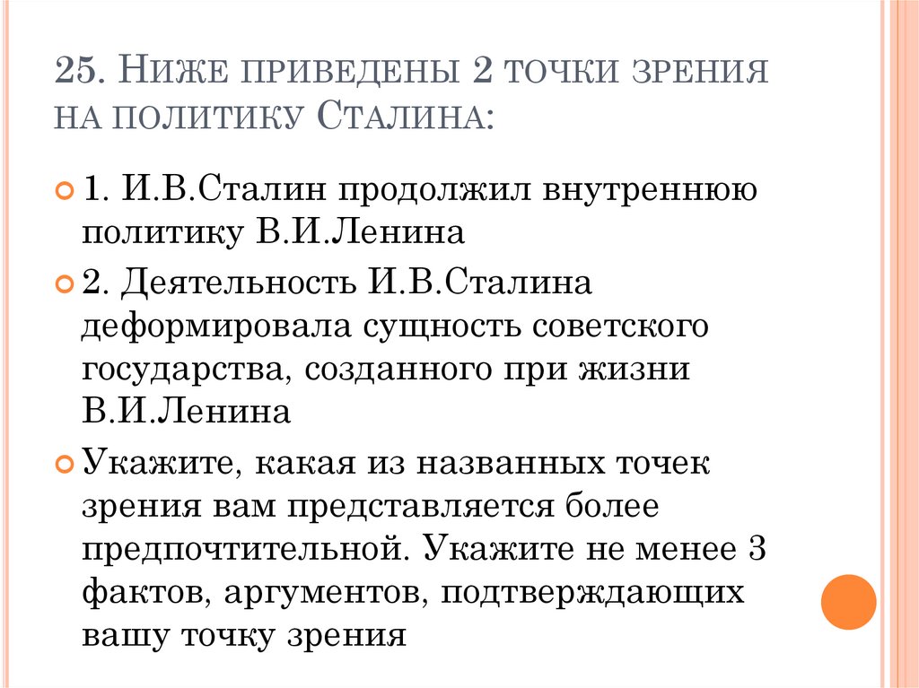 25. НИЖЕ ПРИВЕДЕНЫ 2 ТОЧКИ ЗРЕНИЯНА ПОЛИТИКУ СТАЛИНА: