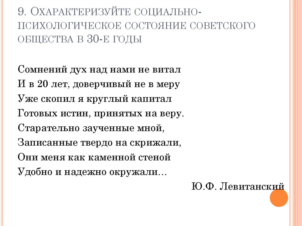 9. ОХАРАКТЕРИЗУЙТЕ СОЦИАЛЬНОПСИХОЛОГИЧЕСКОЕ СОСТОЯНИЕ СОВЕТСКОГООБЩЕСТВА В 30-Е ГОДЫ