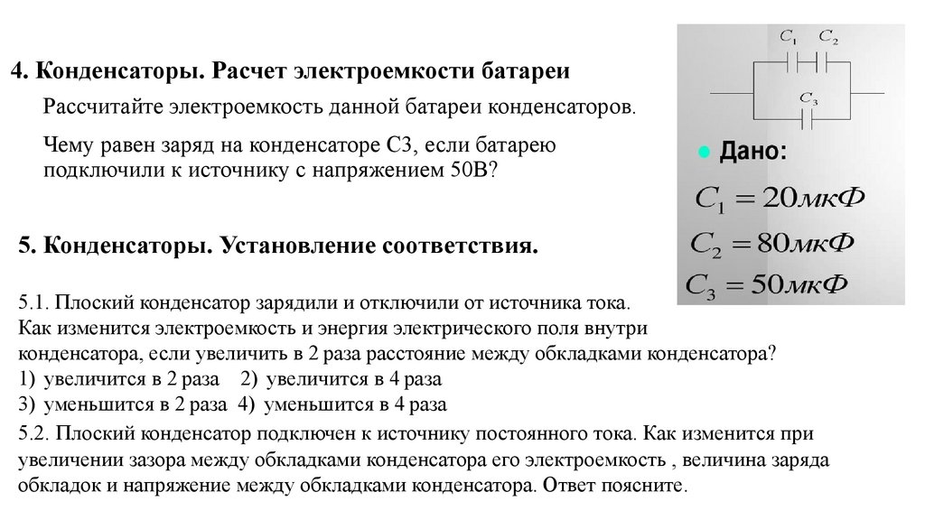 4. Конденсаторы. Расчет электроемкости батареиРассчитайте электроемкость данной батареи конденсаторов.