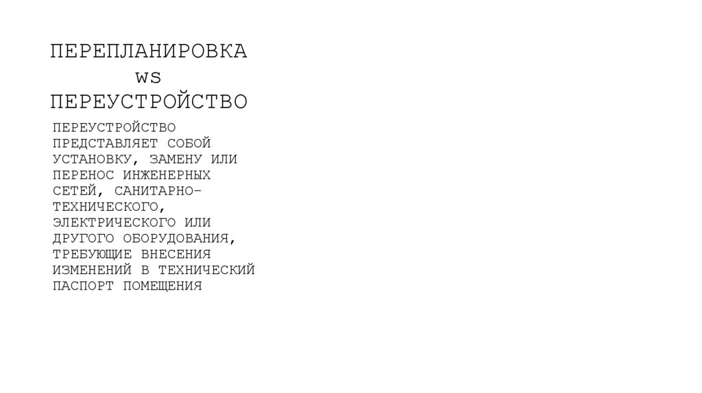 ЛЮБАЯ ПЕРЕПЛАНИРОВКА И/ИЛИПЕРЕУСТРОЙСТВО ТРЕБУЮТ