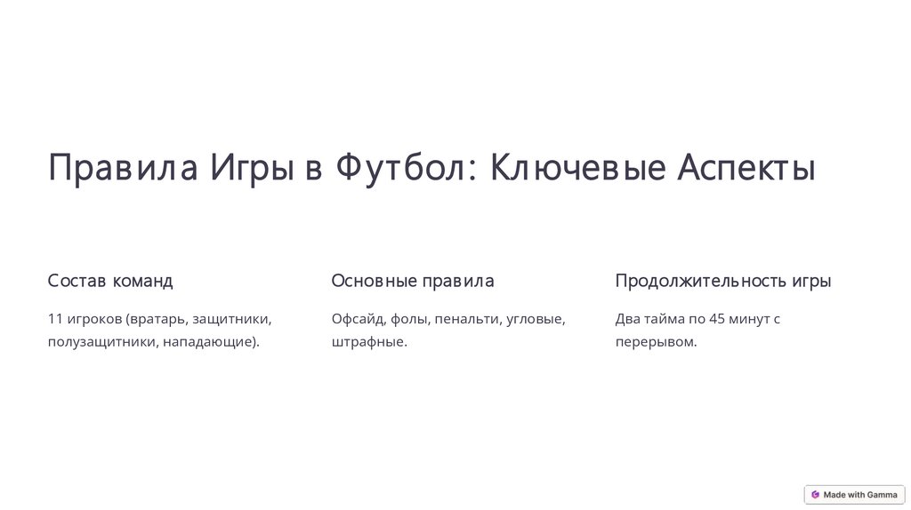 Прав ил а Игры в Ф утбол : Кл ючев ые АспектыСостав команд