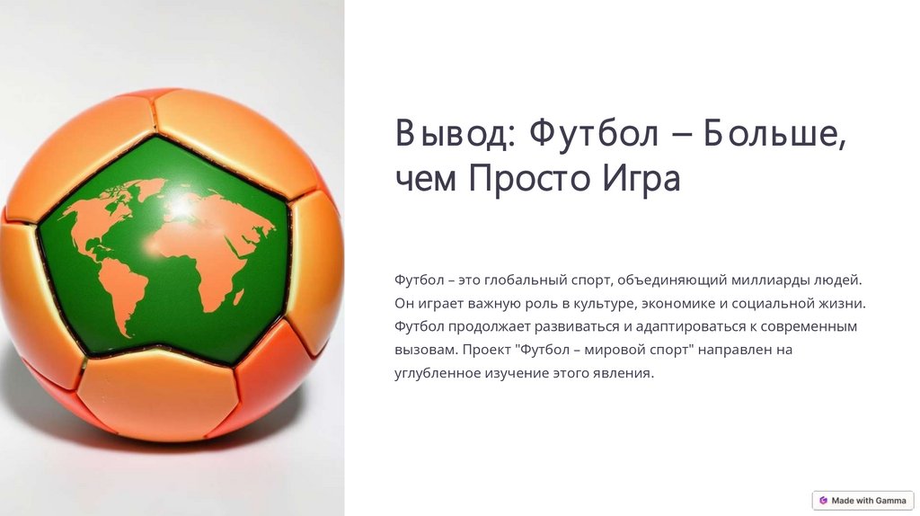 В ывод: Ф утбол – Б ольше,чем Просто Игра