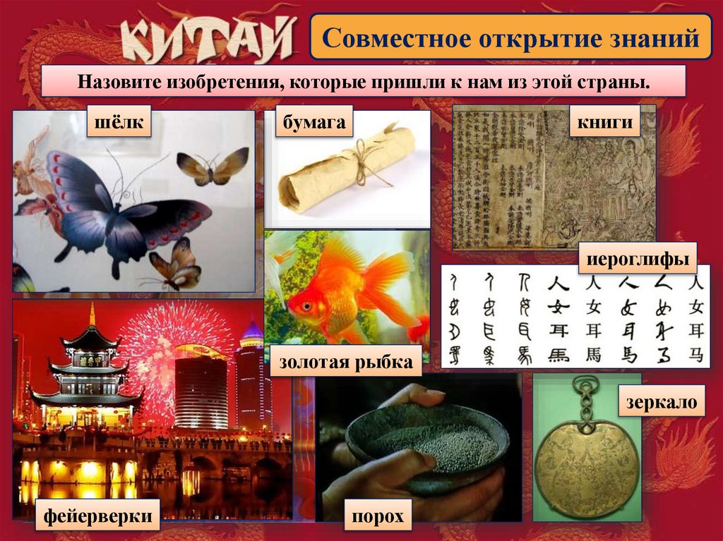 Совместное открытие знанийНазовите изобретения, которые пришли к нам из этой страны.