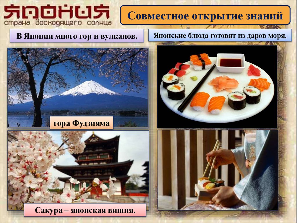 Совместное открытие знанийВ Японии много гор и вулканов.
