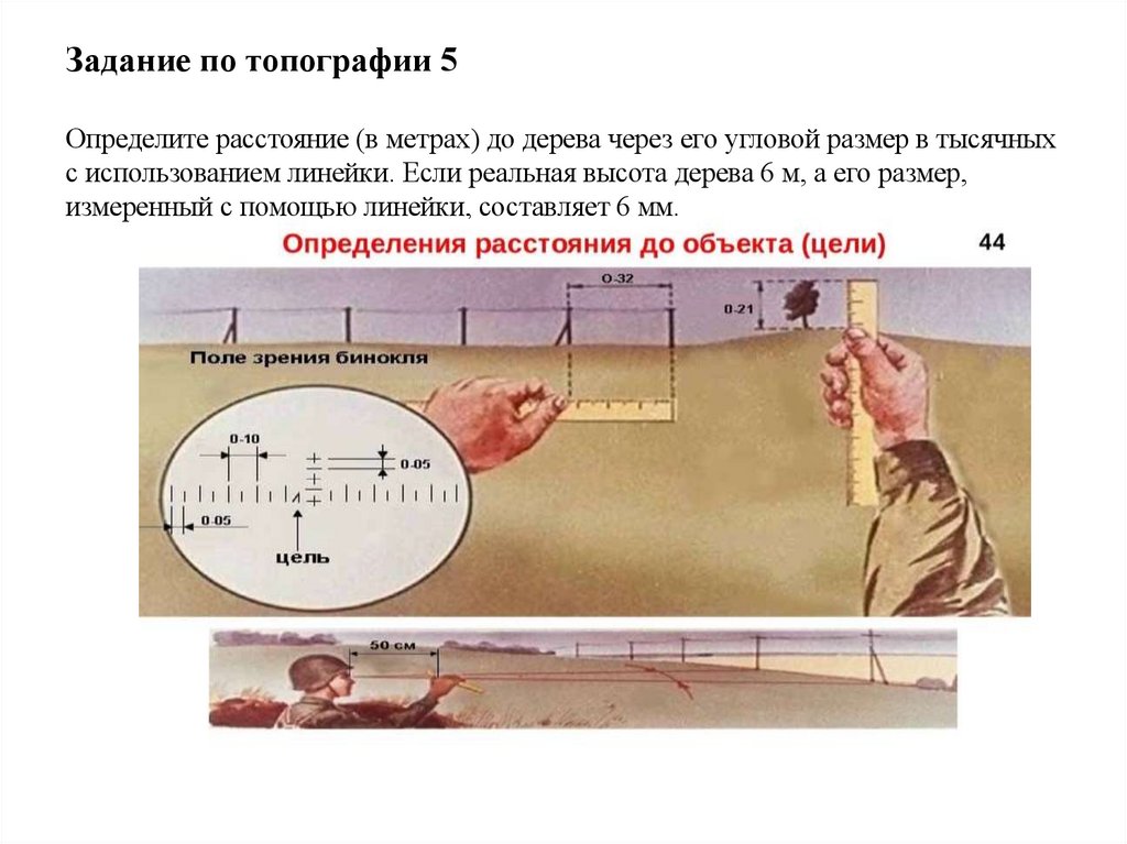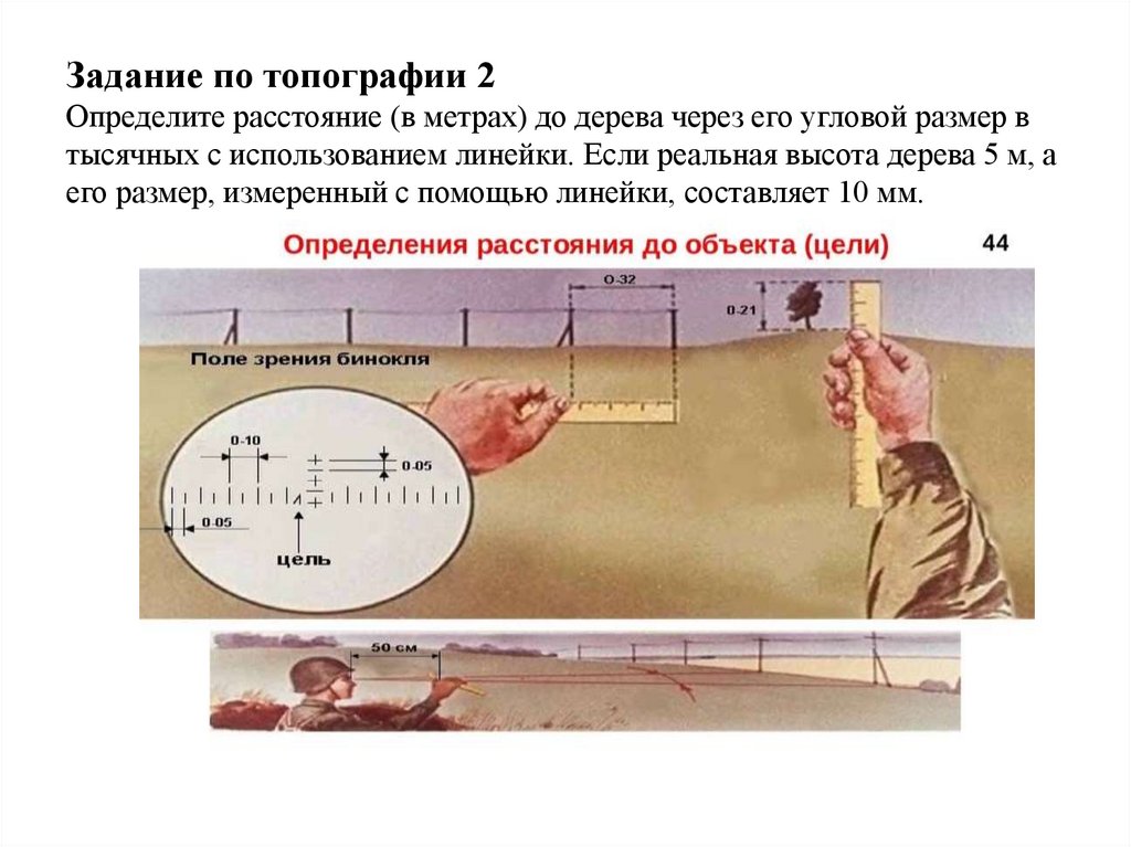 Задание по топографии 6Определите расстояние (в метрах) до дерева через его угловой размер в тысячных