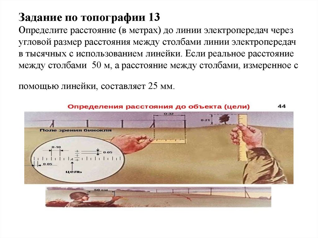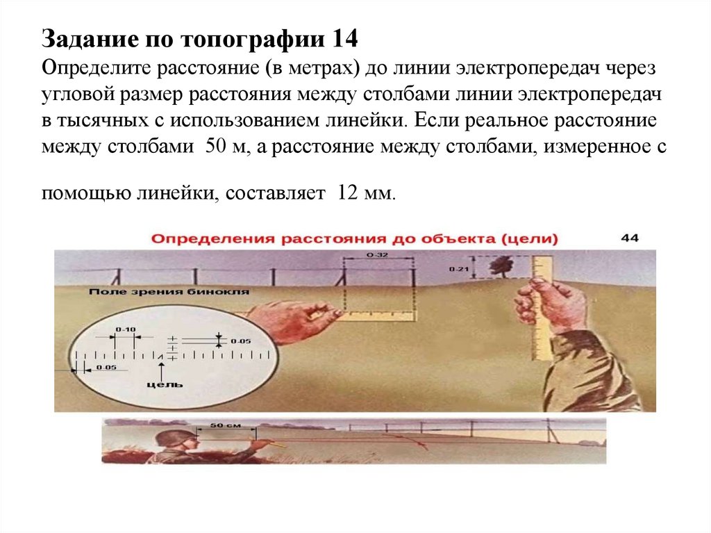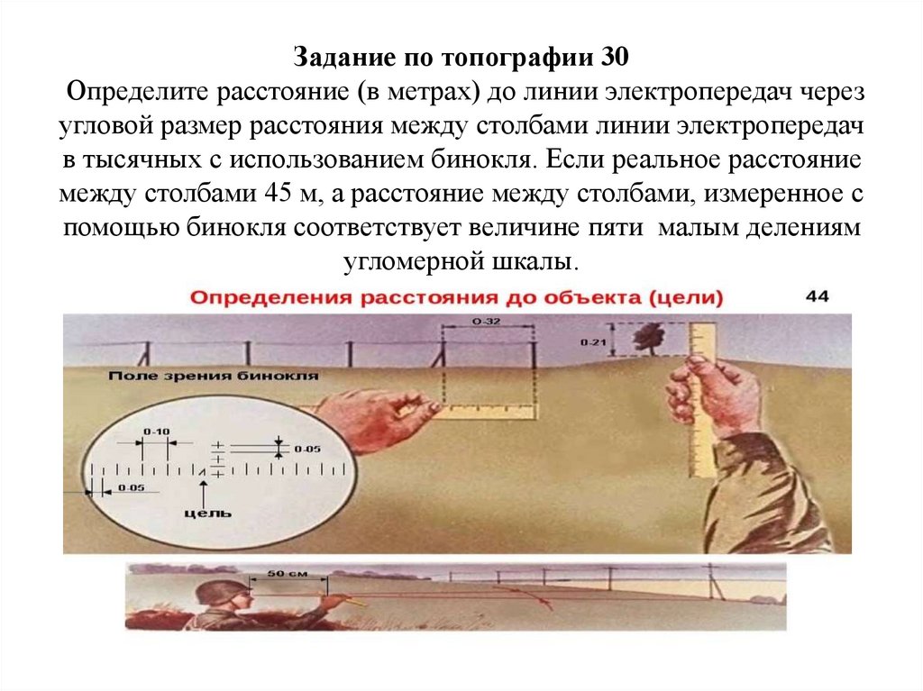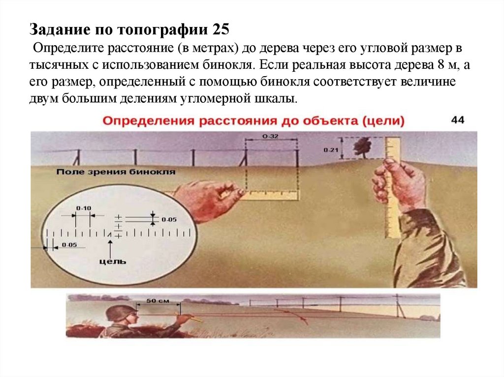 Задание по топографии 9Определите расстояние (в метрах) до дерева через его угловой размер в тысячных