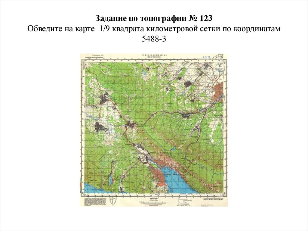 Задание по топографии № 123Обведите на карте 1/9 квадрата километровой сетки по координатам