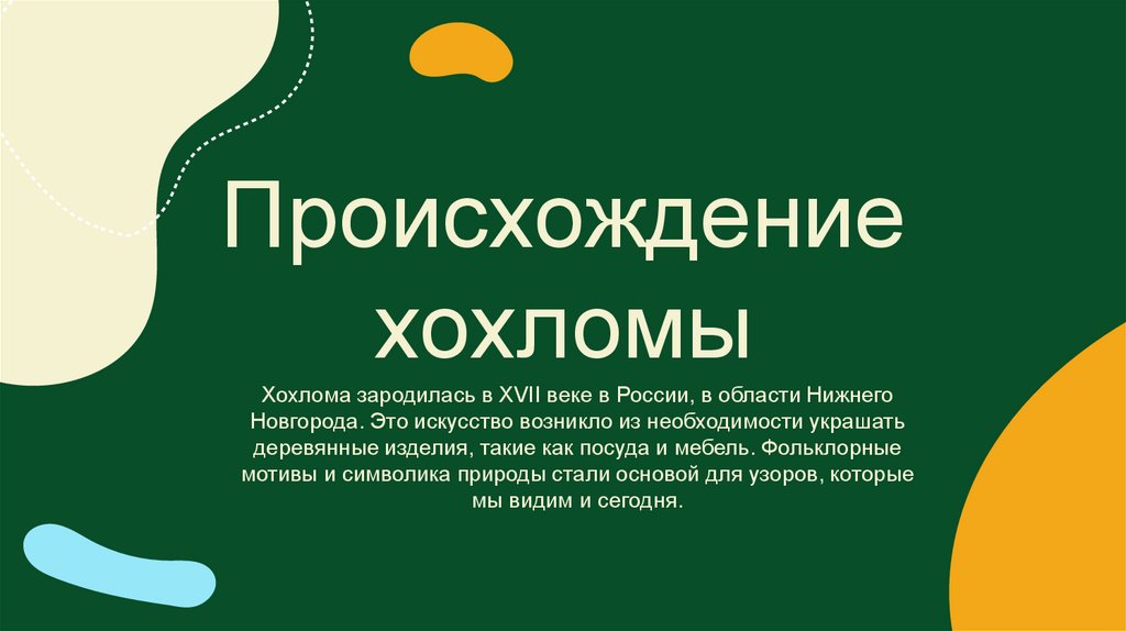 Хохлома зародилась в XVII веке в России, в области Нижнего