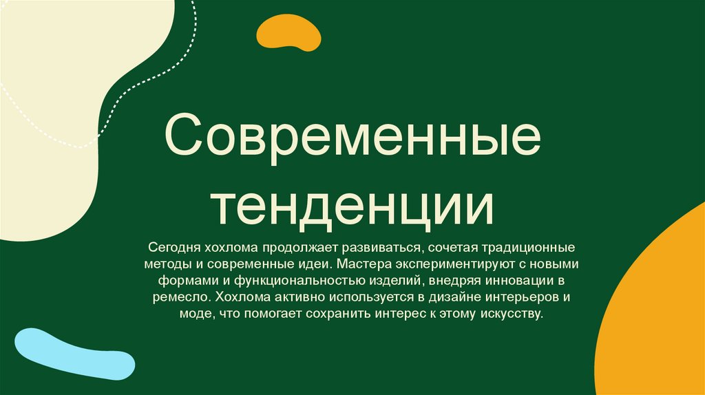 Сегодня хохлома продолжает развиваться, сочетая традиционные
