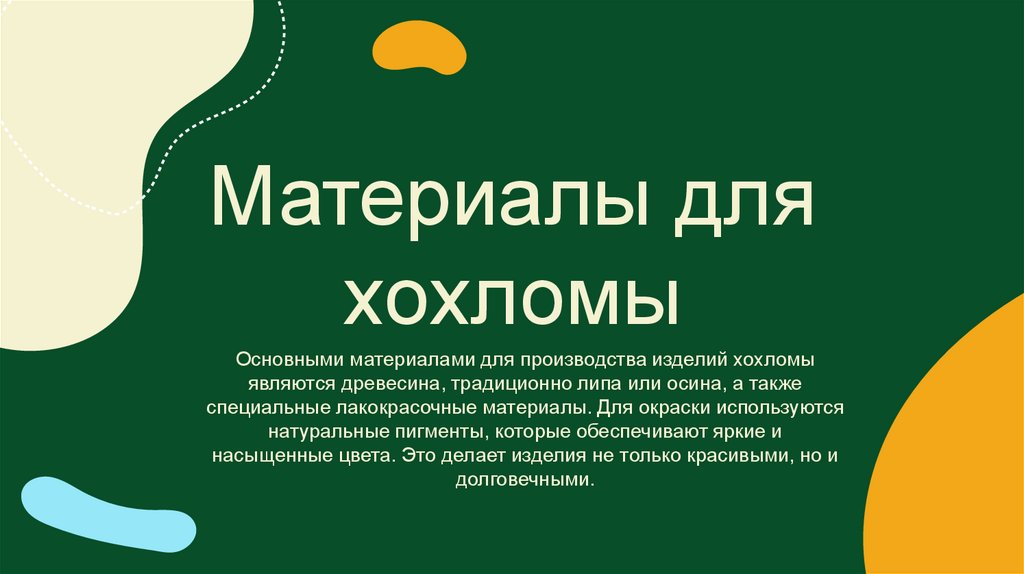 деревянные изделия, такие как посуда и мебель. Фольклорные