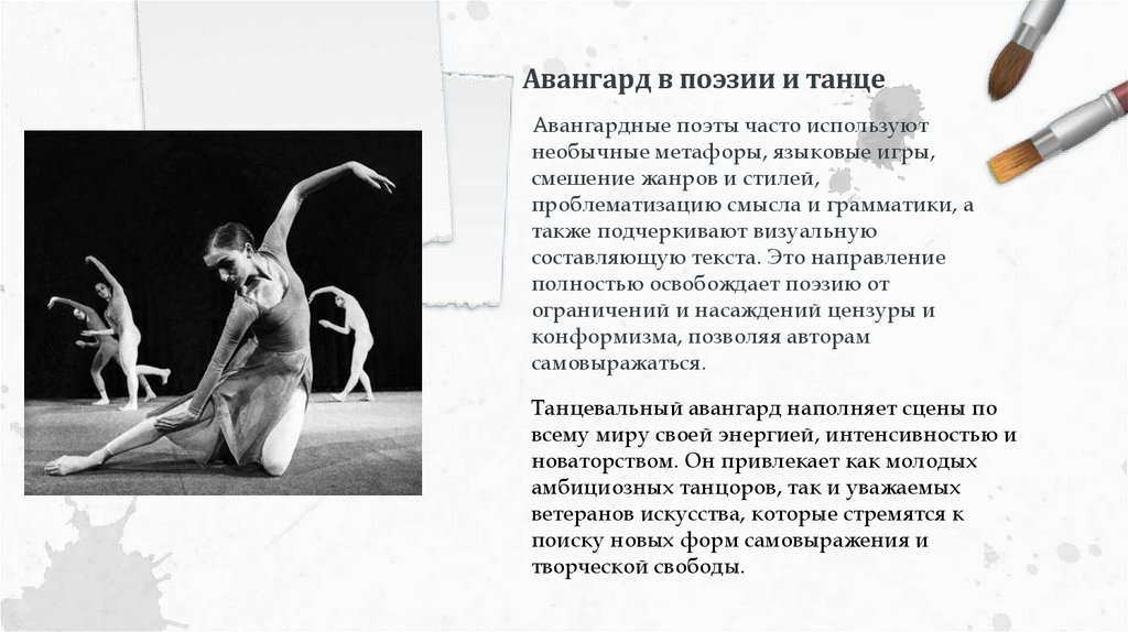 Авангард в поэзии и танцеАвангардные поэты часто используют