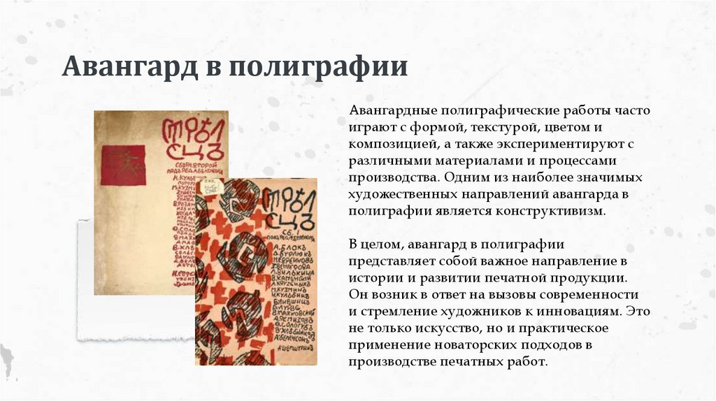 Авангард в полиграфииАвангардные полиграфические работы часто