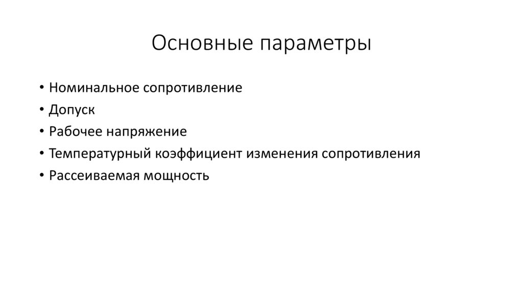 Основные параметры• Номинальное сопротивление