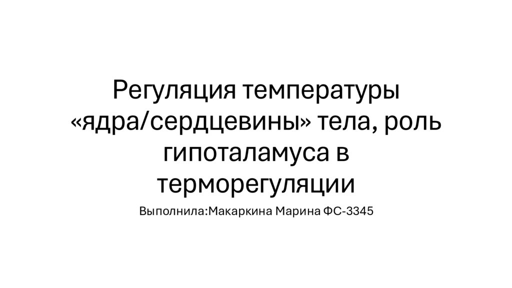 Регуляция температуры«ядра/сердцевины» тела, роль