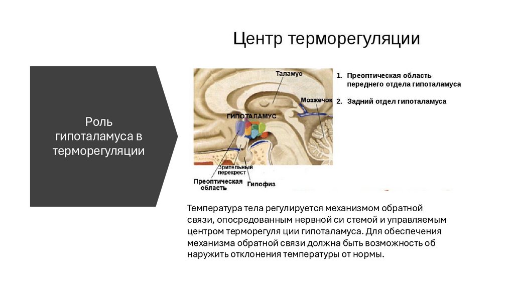 Регуляция температуры тела, роль гипоталамуса в терморегуляции