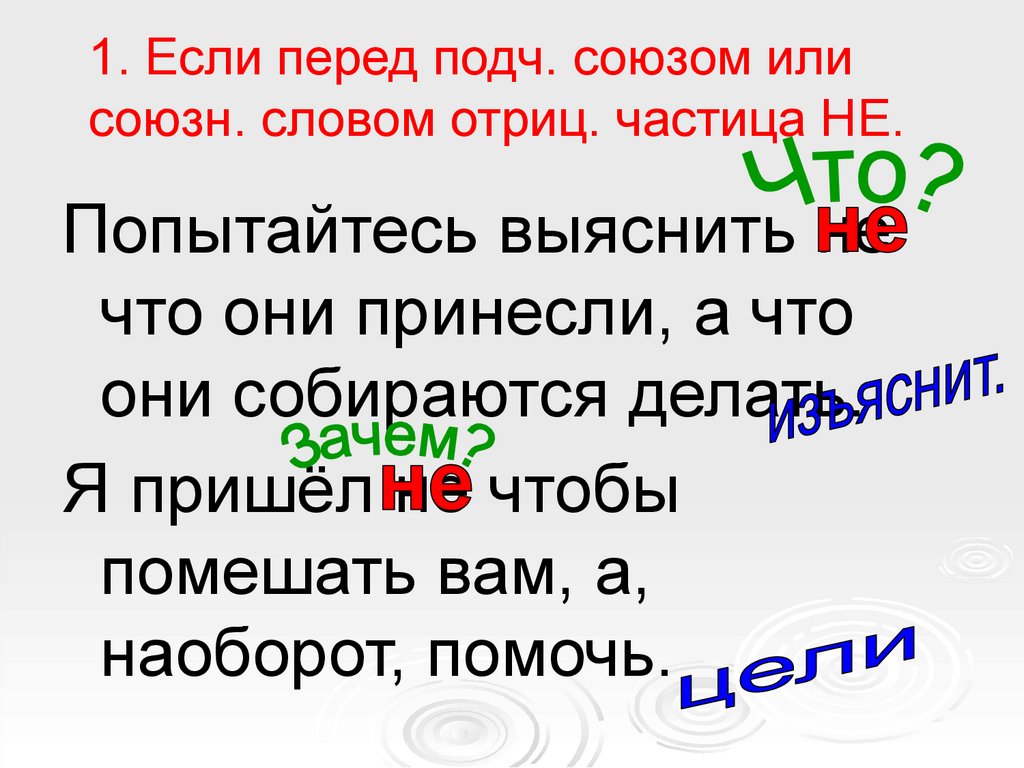 перед подч. союзом или союзн. словом отриц. частица НЕ