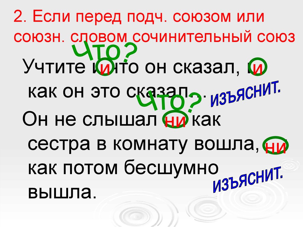 2. Если перед подч. союзом илисоюзн. словом сочинительный союз