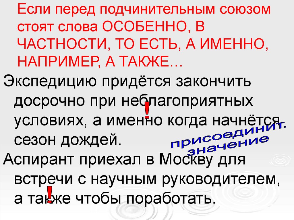 Если перед подчинительным союзомстоят слова ОСОБЕННО, В