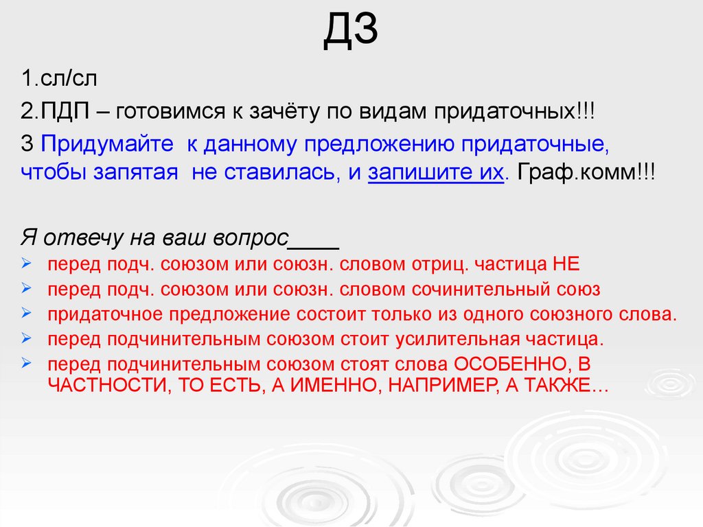 2.ПДП – готовимся к зачёту по видам придаточных!!!