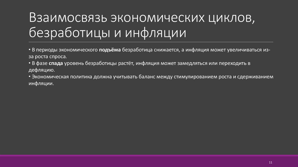 11 – Взаимосвязь экономических циклов, безработицы и инфляции.