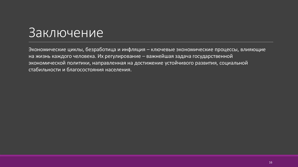 ЗаключениеЭкономические циклы, безработица и инфляция – ключевые экономические процессы, влияющие