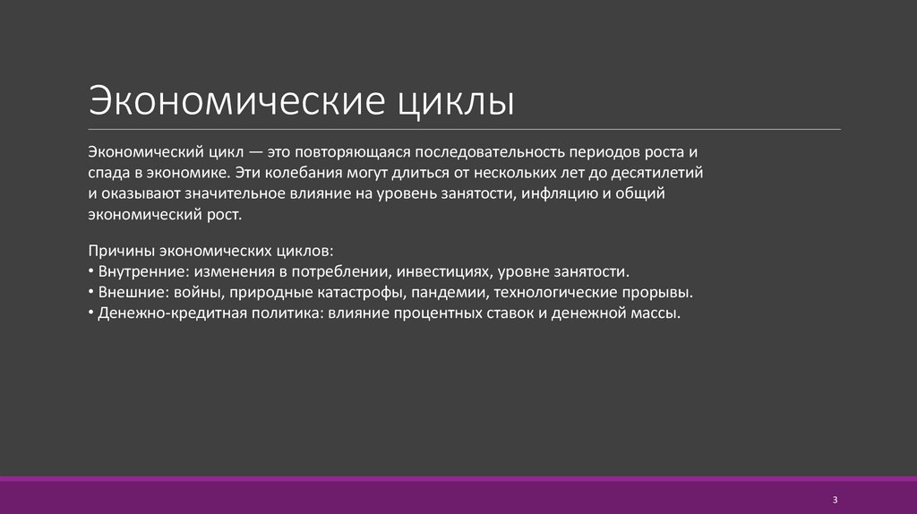 Экономические циклыЭкономический цикл — это повторяющаяся последовательность периодов роста и
