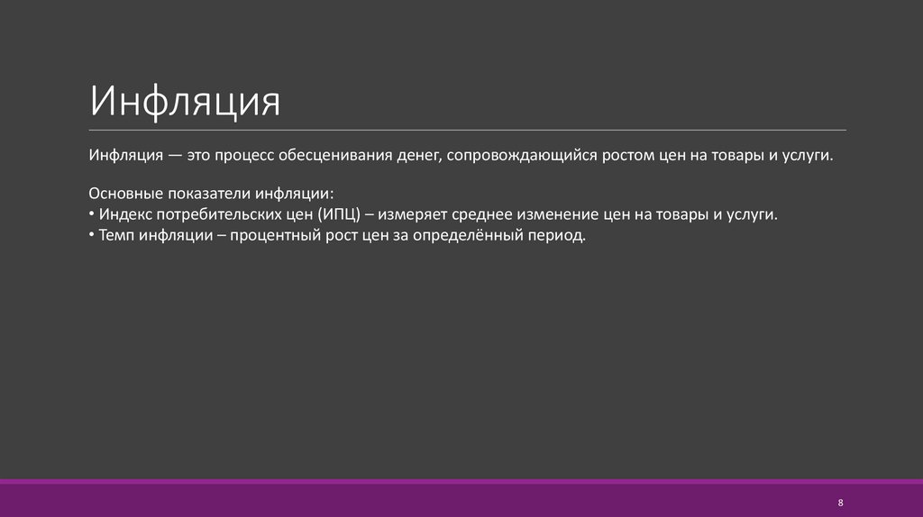 ИнфляцияИнфляция — это процесс обесценивания денег, сопровождающийся ростом цен на товары и услуги.