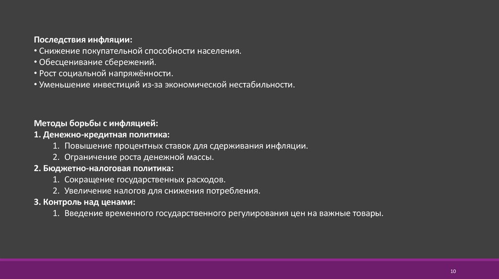 • Экономическая политика должна учитывать баланс между стимулированием роста и сдерживанием