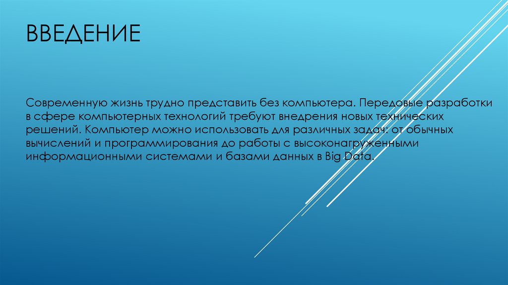 ВВЕДЕНИЕСовременную жизнь трудно представить без компьютера. Передовые разработки