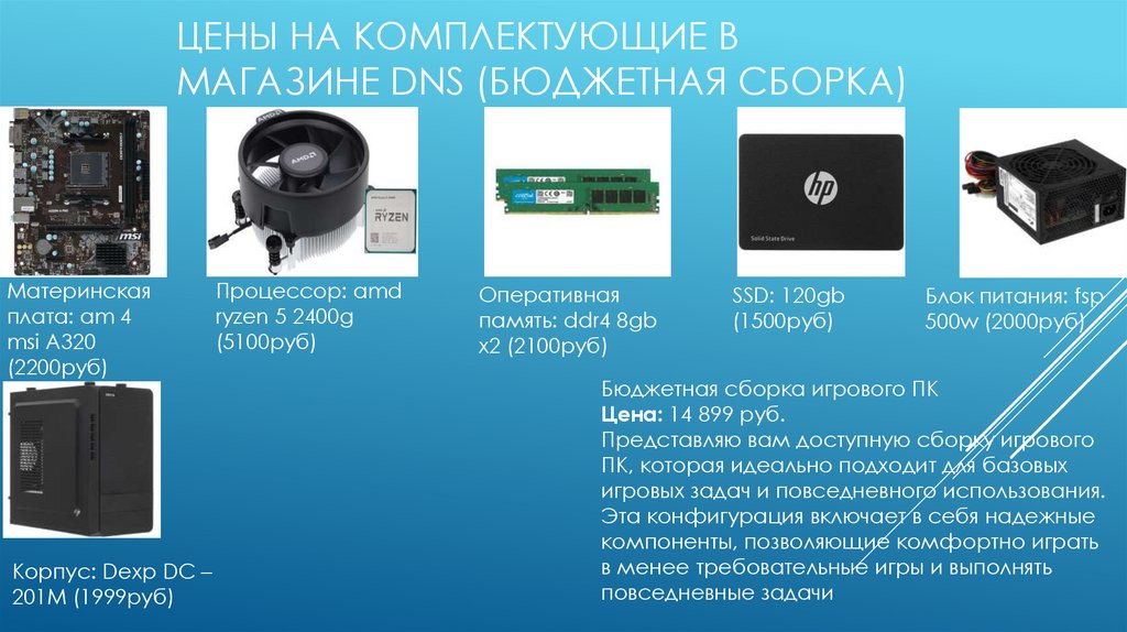 ЦЕНЫ НА КОМПЛЕКТУЮЩИЕ ВМАГАЗИНЕ DNS (БЮДЖЕТНАЯ СБОРКА)