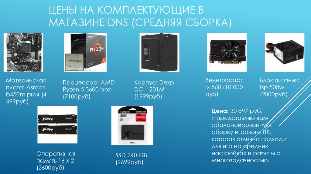 ЦЕНЫ НА КОМПЛЕКТУЮЩИЕ ВМАГАЗИНЕ DNS (СРЕДНЯЯ СБОРКА)