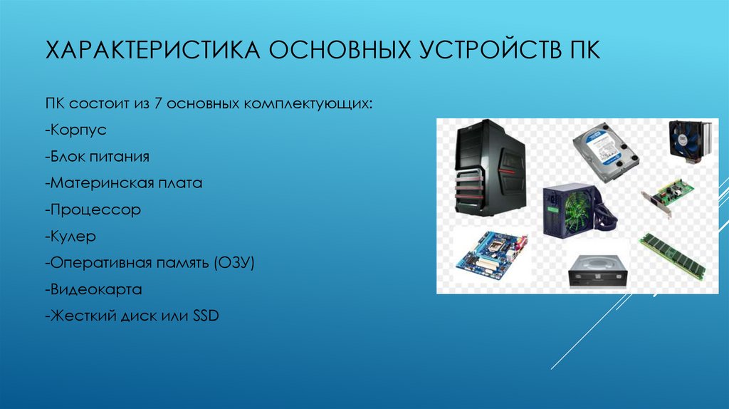 ХАРАКТЕРИСТИКА ОСНОВНЫХ УСТРОЙСТВ ПКПК состоит из 7 основных комплектующих: