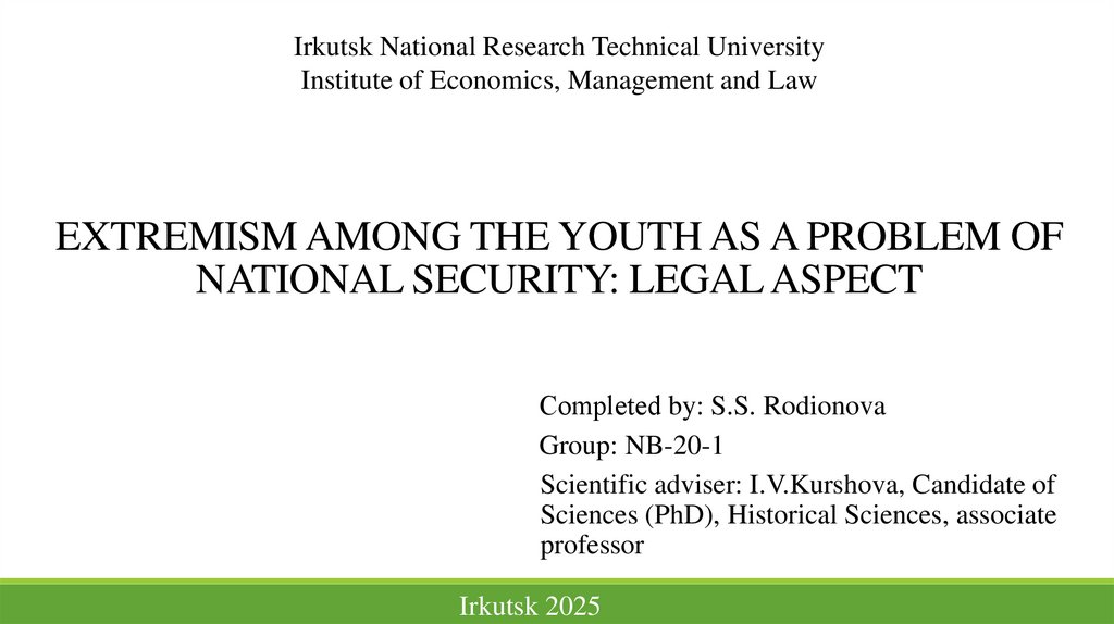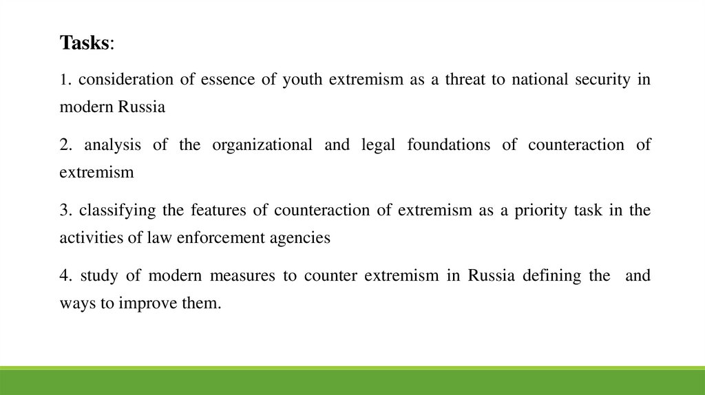 Tasks:1. consideration of essence of youth extremism as a threat to national security in