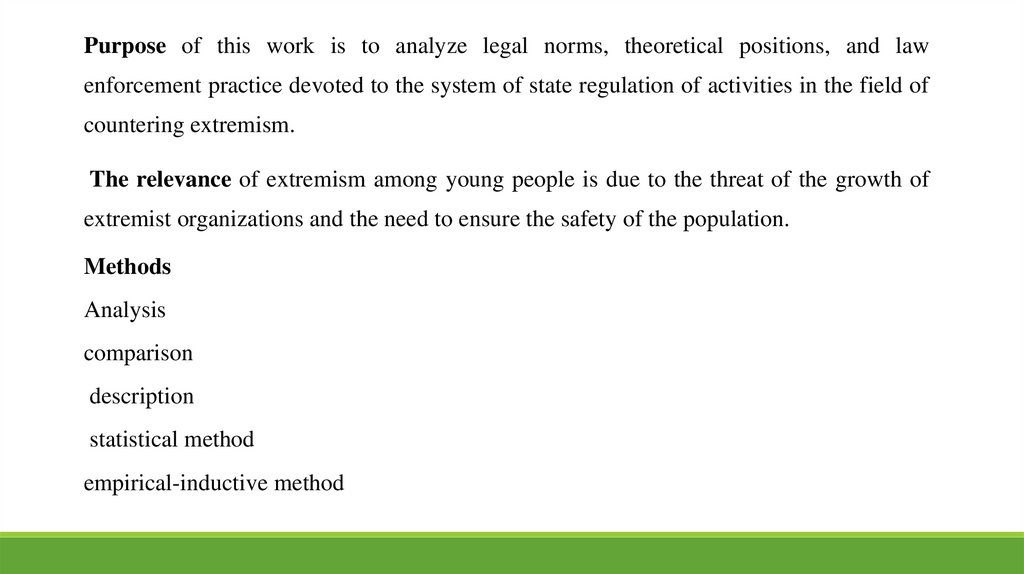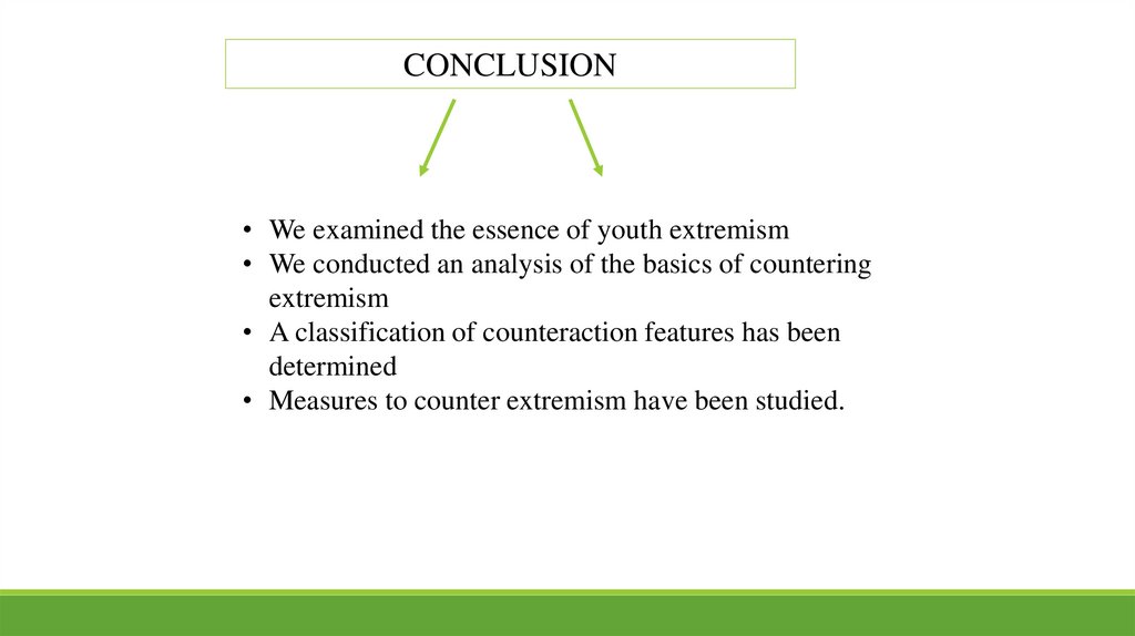 CONCLUSION• We examined the essence of youth extremism