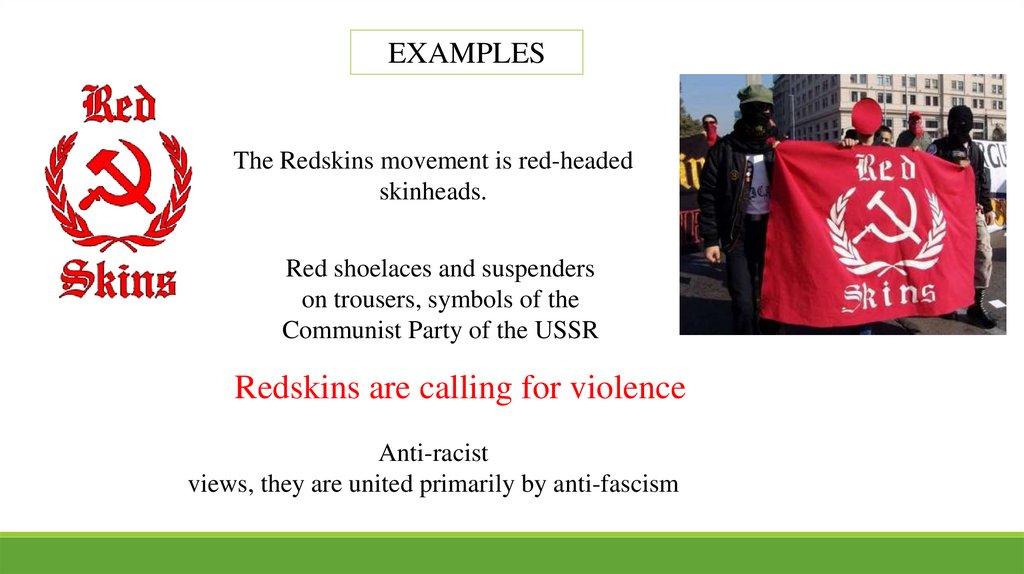 EXAMPLESThe Redskins movement is red-headed