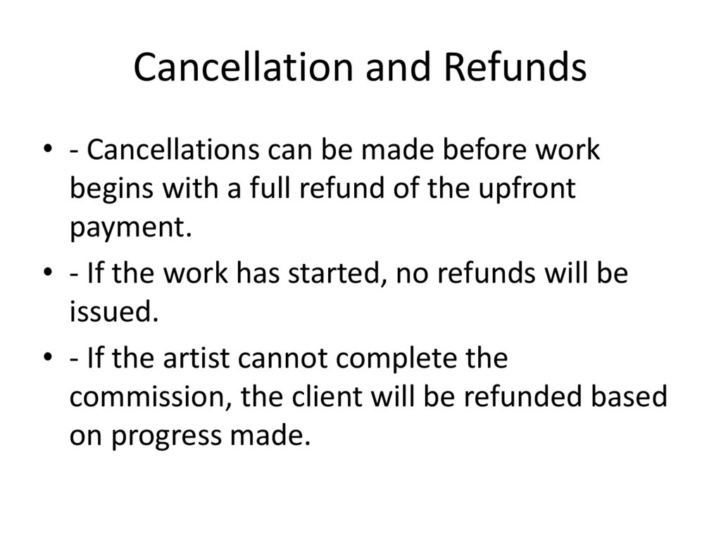 • - If the work has started, no refunds will be