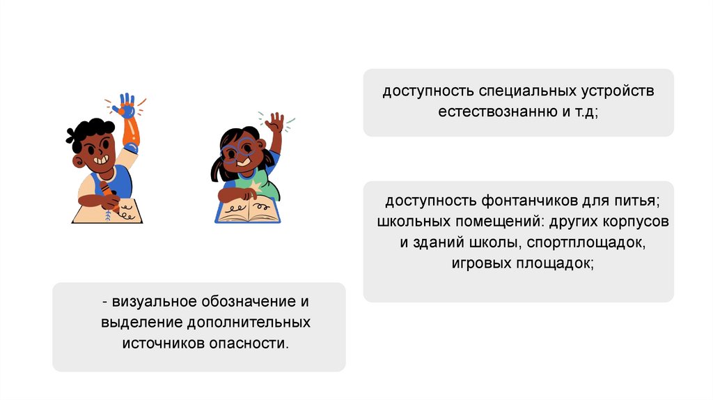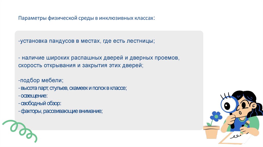 Параметры физической среды в инклюзивных классах:-установка пандусов в местах, где есть лестницы;