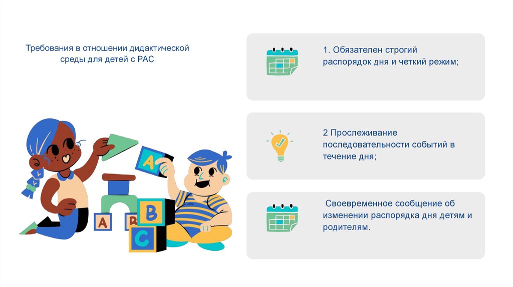 -наглядный материал должен быть ярким(для РАС не сильно ярким) и