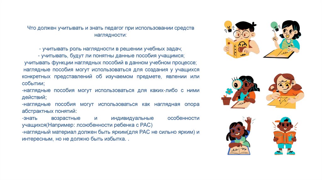 Что должен учитывать и знать педагог при использовании средствнаглядности: